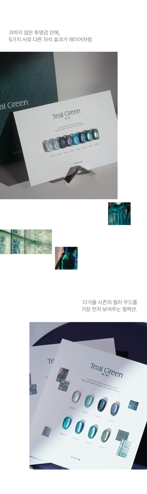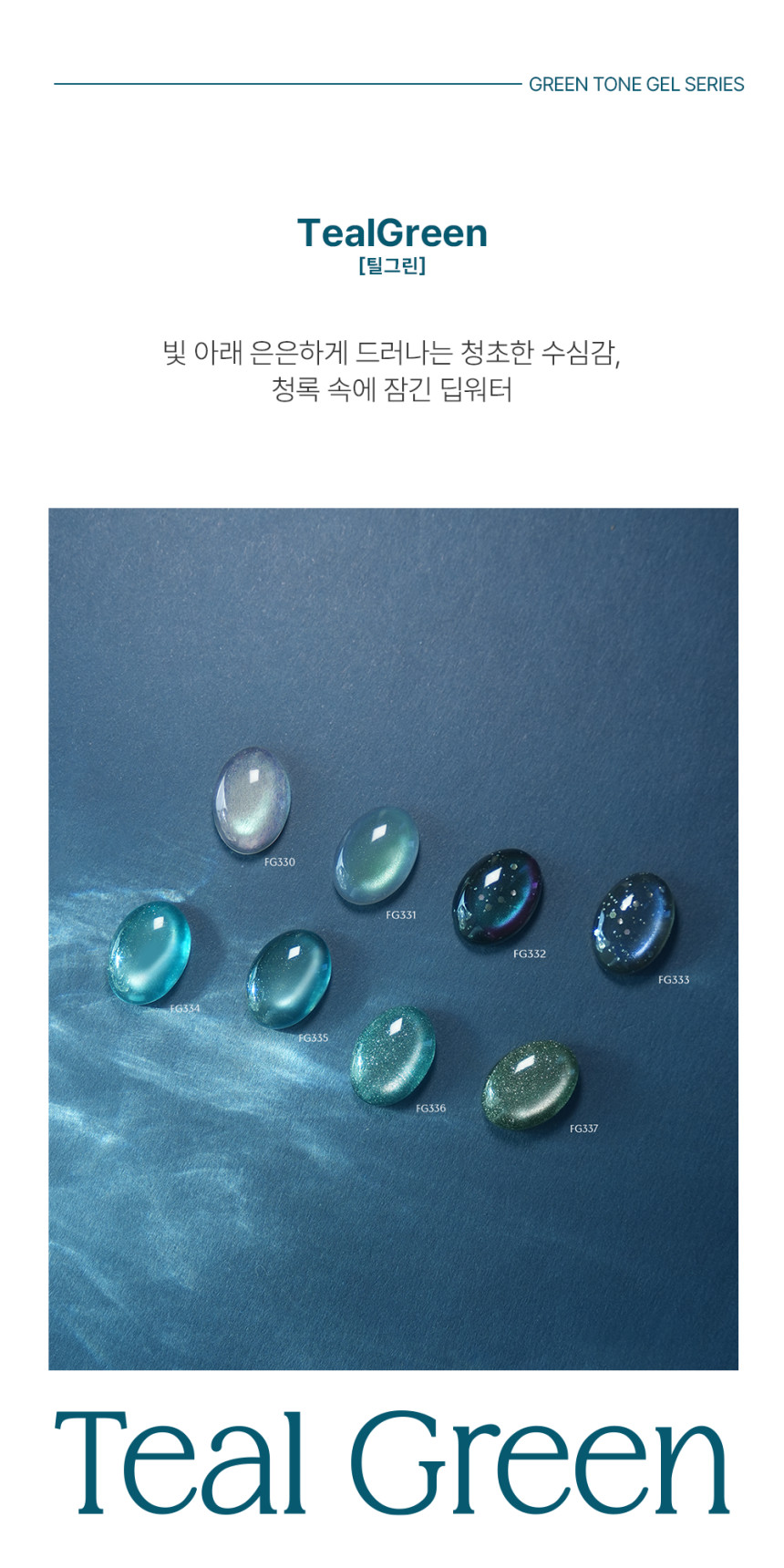 - 8 unique teal green shades with glitter