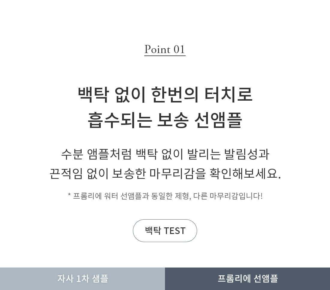 This sun ampoule absorbs effortlessly into the skin with just one touch, leaving no white cast. Enjoy a smooth, non-sticky application that feels more like a moisture-rich ampoule than a traditional sunscreen.