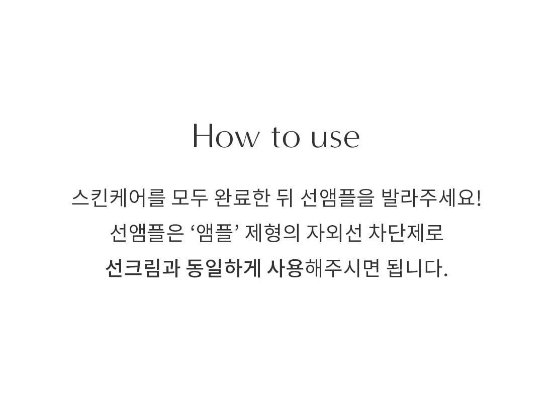 After completing your skincare routine, apply the sun ampoule evenly over your face and neck. This ampoule-type UV blocker functions just like a sunscreen and should be applied as the final step in your routine for optimal sun protection.