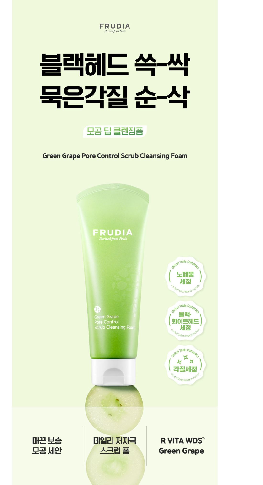 The Frudia Green Grape Pore Control Scrub Cleansing Foam is a refreshing cleansing foam that cleanses the pores and helps reduces excess sebum. Dust Zero Complex™ helps remove skin’s impurities and fine dust while grape seed granules get rid of excess sebum, blackheads and whiteheads without any irritation, leaving a smooth complexion.