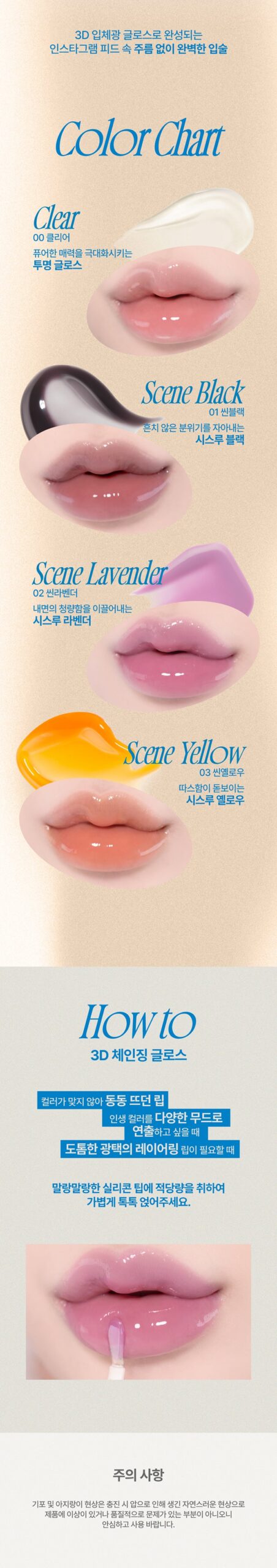 - 03 Scene Yellow: A warm, see-through yellow shade that brings a cozy, sunny glow to your lips.