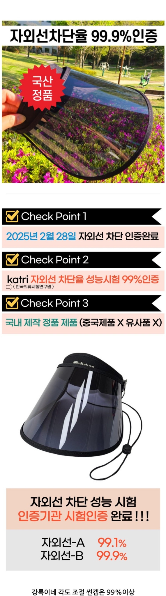 Gangrokine Korean Made UV 99.9% Sun Protection Unisex Sun Cap