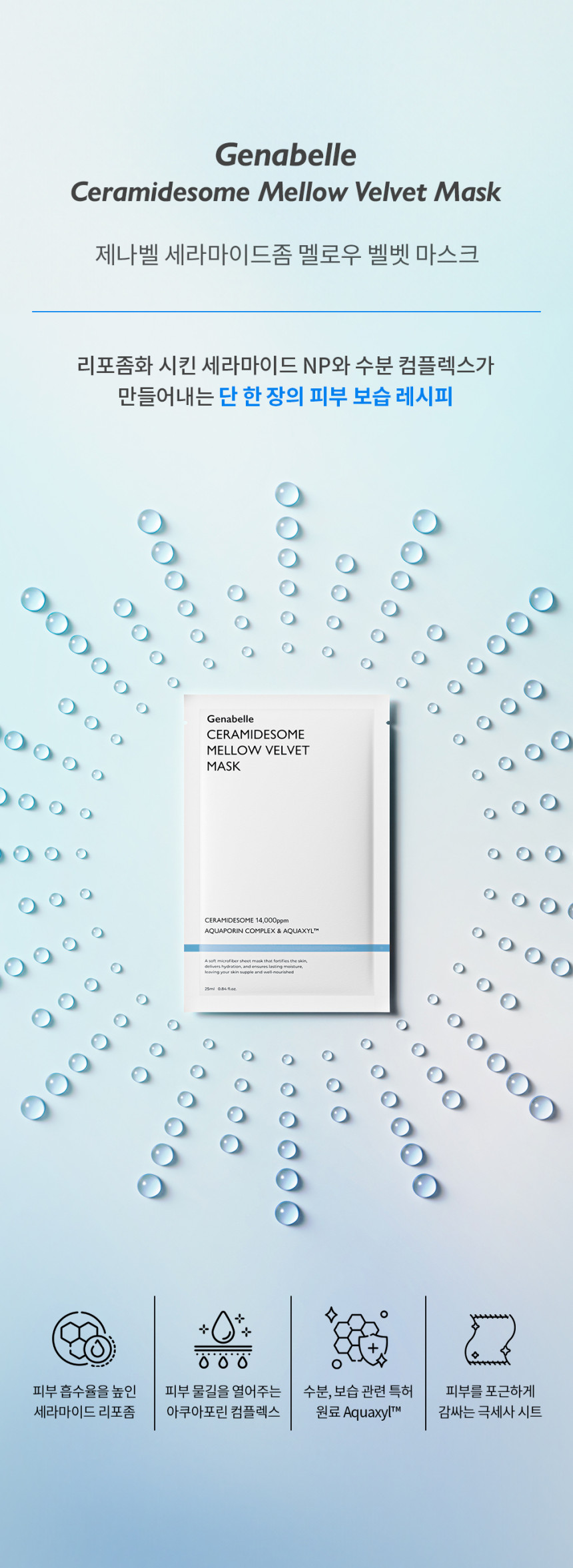 The Genabelle Ceramidesome Mellow Velvet Mask intensely hydrates and fortifies the skin’s natural barrier, reducing dryness and keeping your skin soft and plump. Enriched with Ceramide Liposome to deliver deep hydration and enhance overall skin barrier, while PDRN improves overall skin brightness, plumpness and elasticity. Features Aquaporin Complex to create moisture pathways and hydrate dry areas, while Aquaxyl™ supports hydration and moisture retention. Crafted with a plush, breathable mask material that fits comfortably on the face, ensuring efficient absorption of active ingredients for maximum benefits.