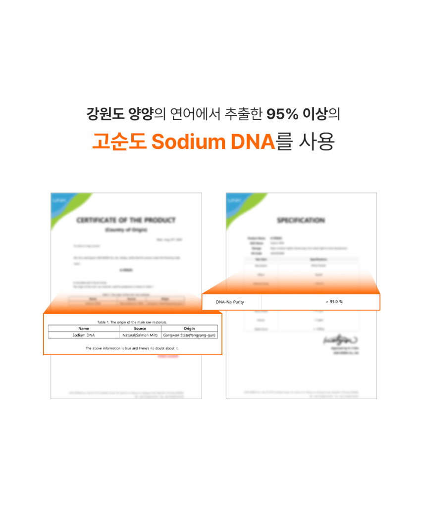 Water, Dipropylene Glycol, Butylene Glycol, Sodium DNA (30,000ppm), Propanediol, Glycerin, Niacinamide, Panthenol, 1,2-Hexanediol, Arginine, Carbomer, Polyglyceryl-10 Laurate, Betaine, Allantoin, Polyglyceryl-4 Laurate, Ethylhexylglycerin, Sodium Hyaluronate, Caprylyl Glycol, Adenosine, Centella Asiatica Extract, Disodium EDTA, Hydrolyzed Sodium DNA, Hyaluronic Acid, Tripeptide-1, Acetyl Hexapeptide-8