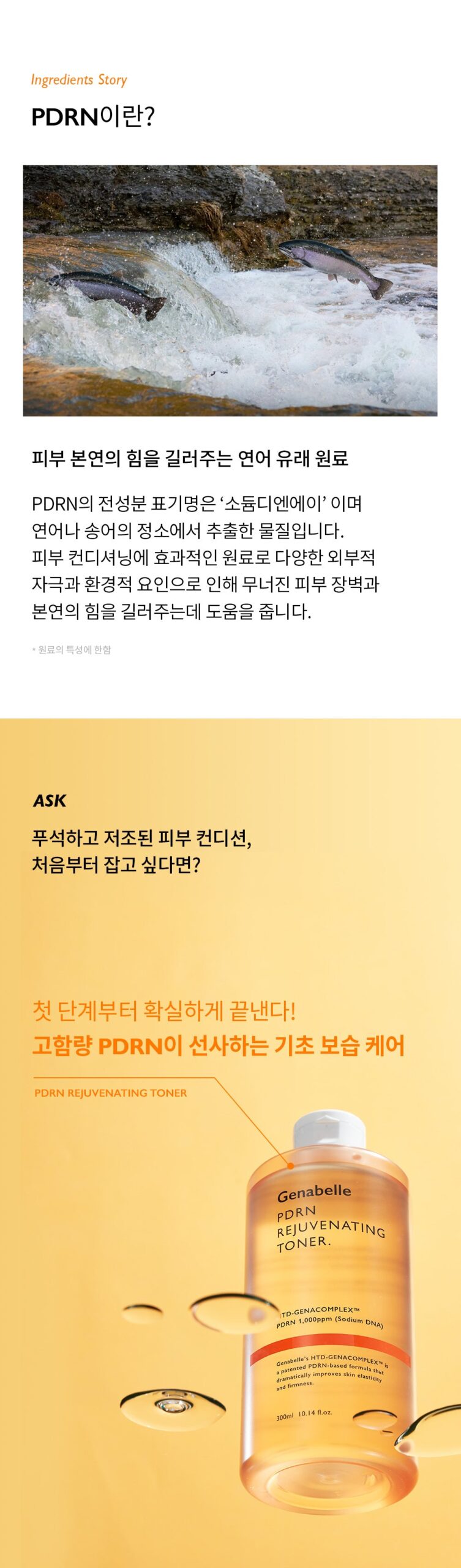 Elevate your skincare routine with Genabelle PDRN Rejuvenating Toner, a high-nutrition moisturizing solution enriched with 1,000ppm of PDRN and Genabelle’s proprietary ingredients. This toner offers essential hydration and prepares your skin for optimal care right from the first step.