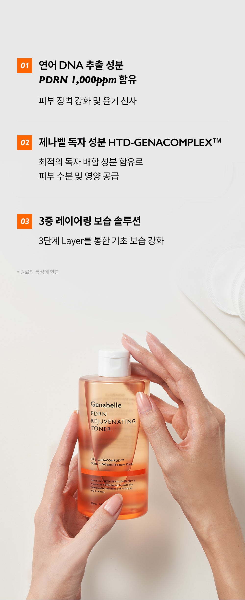 Elevate your skincare routine with Genabelle PDRN Rejuvenating Toner, a high-nutrition moisturizing solution enriched with 1,000ppm of PDRN and Genabelle’s proprietary ingredients. This toner offers essential hydration and prepares your skin for optimal care right from the first step.