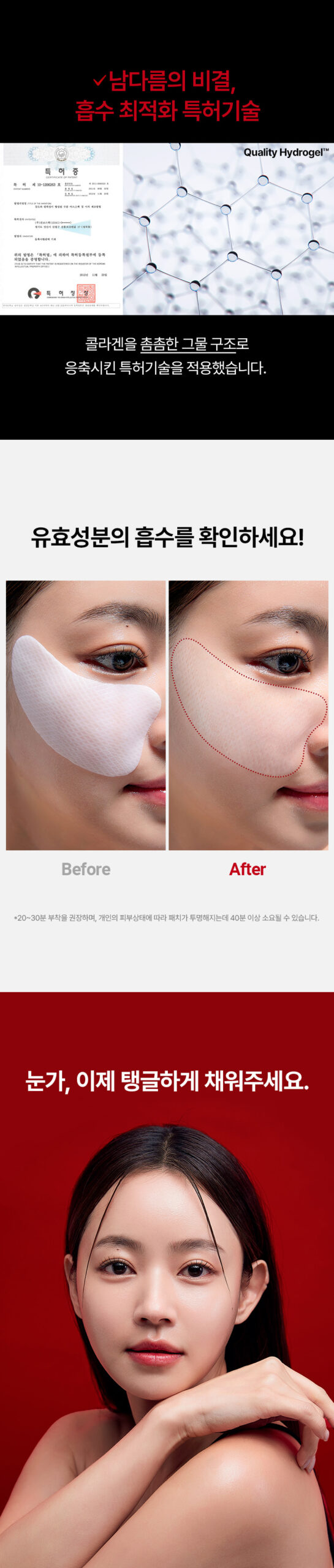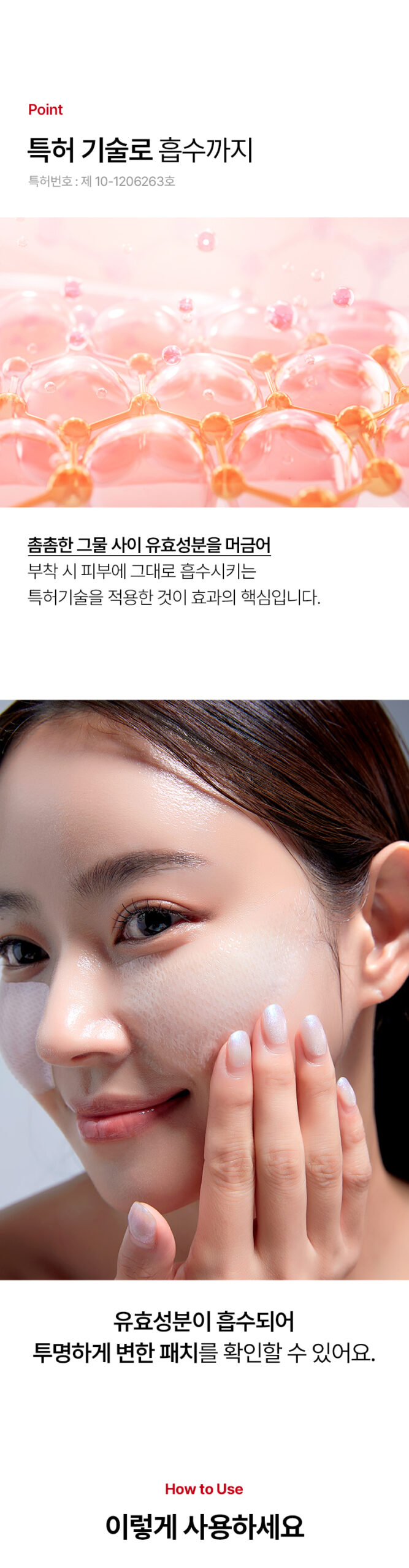 As the patch delivers nutrients to the skin, it gradually turns transparent, visibly confirming the absorption of its active ingredients.
