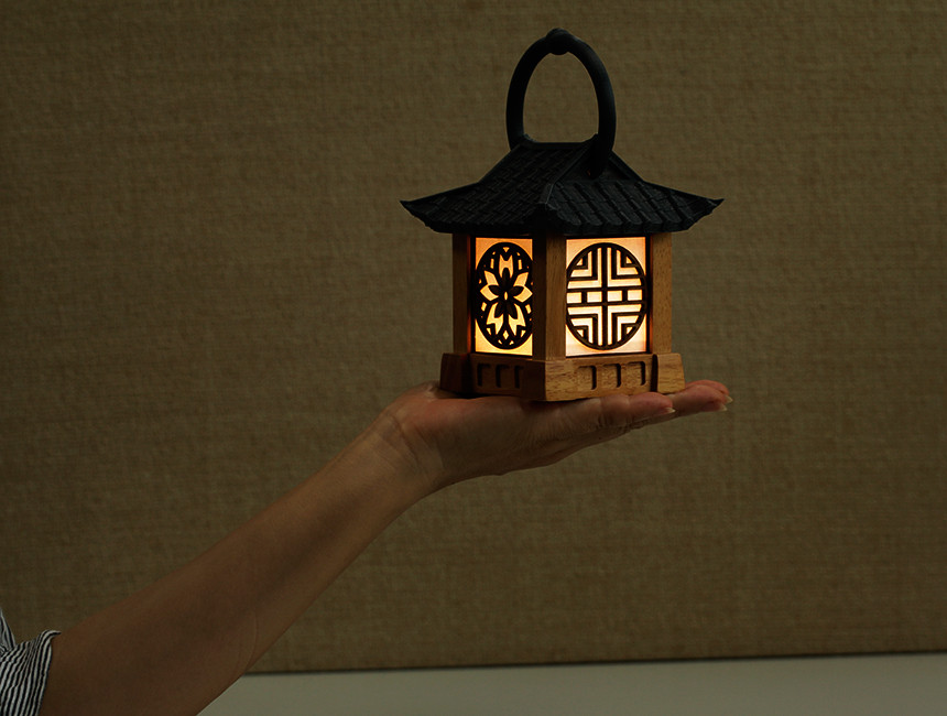 Handcrafted from high-quality natural wood, this lamp maintains the authentic feel and grain of its materials. The roof, created using advanced 3D printing techniques, replicates the intricate tiles found on traditional Hanok roofs. The result is a harmonious fusion of old-world craftsmanship and modern innovation.