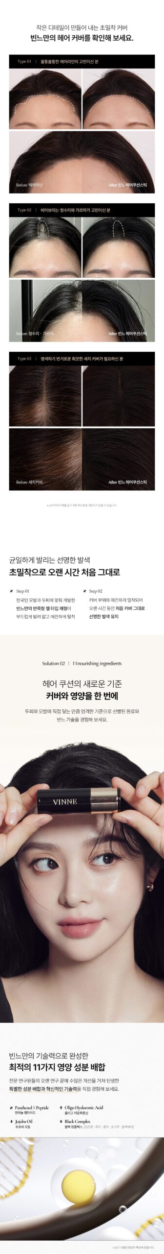 Experience outstanding coverage and lasting power with just one touch. VINNE’s unique paste formula ensures a smooth, even application without powder fallout, providing a quick and easy fix for hair concerns.
