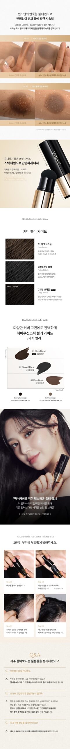 The VINNE All Cover Perfect Hair Cushion Stick adheres evenly to both the scalp and hair without powder fallout. Experience seamless coverage with detailed precision for a natural look!