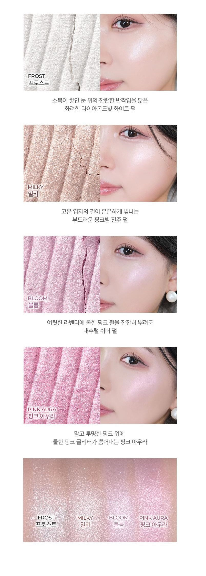 - BLOOM: Lavender hues dusted with cool pink shimmer for a natural yet radiant finish.