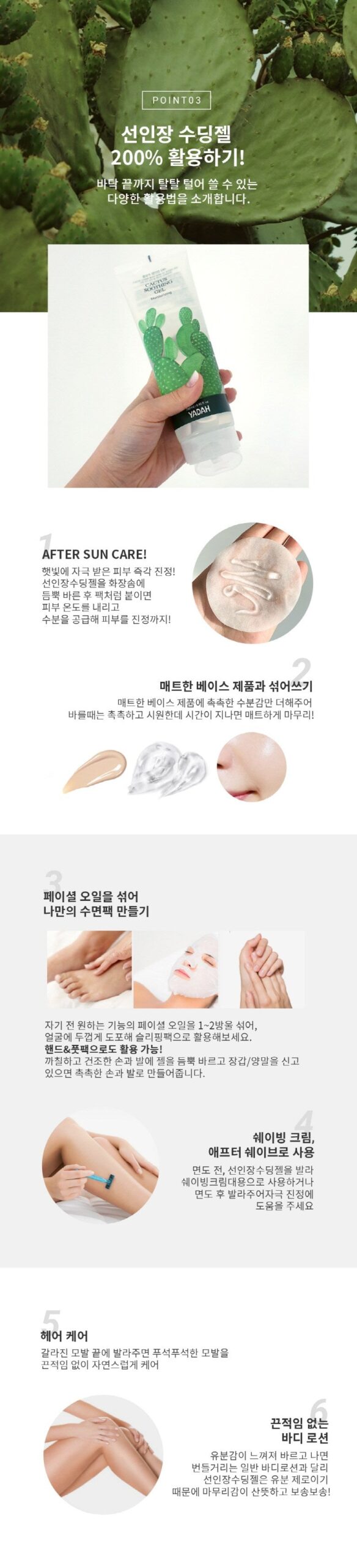 YADAH’s Cactus Soothing Gel amazed me with its hydrating properties. My sun-exposed skin felt instantly calmed and replenished, perfect for an LA summer day.