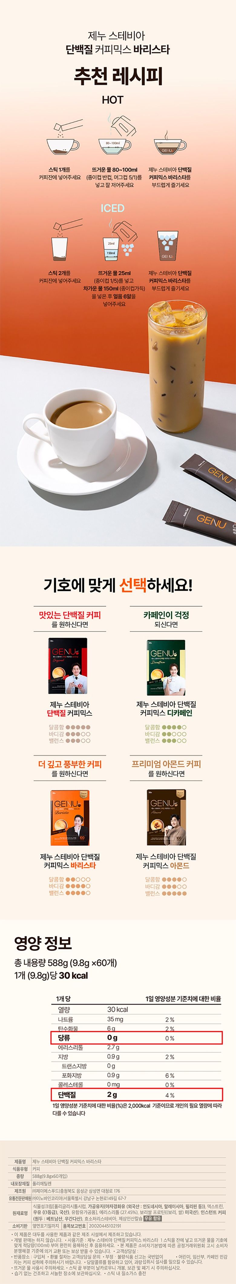 - Add 2 sticks of GENU Stevia Protein Barista Coffee Mix into a coffee cup.