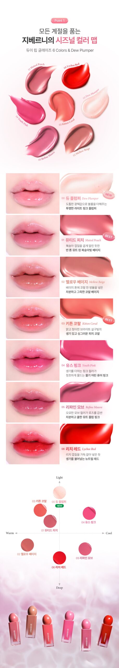 So I picked up the GIVERNY Dewey Lip Glaze recently, and honestly, I’m loving it! It’s got this super smooth texture that feels great on my lips without being sticky at all. I’ve been using the Pure Bright combo of shades 03 and 04 for a light everyday look—it gives me just the right pop of color while keeping things fresh. Plus, there’s something about how it seems to change with each season that’s pretty neat. Like in summer? Perfect for those sunny brunches! The non-sticky formula really plumps my pout too; makes ’em look fuller without any fuss! Definitely gonna be in my makeup bag from now on.