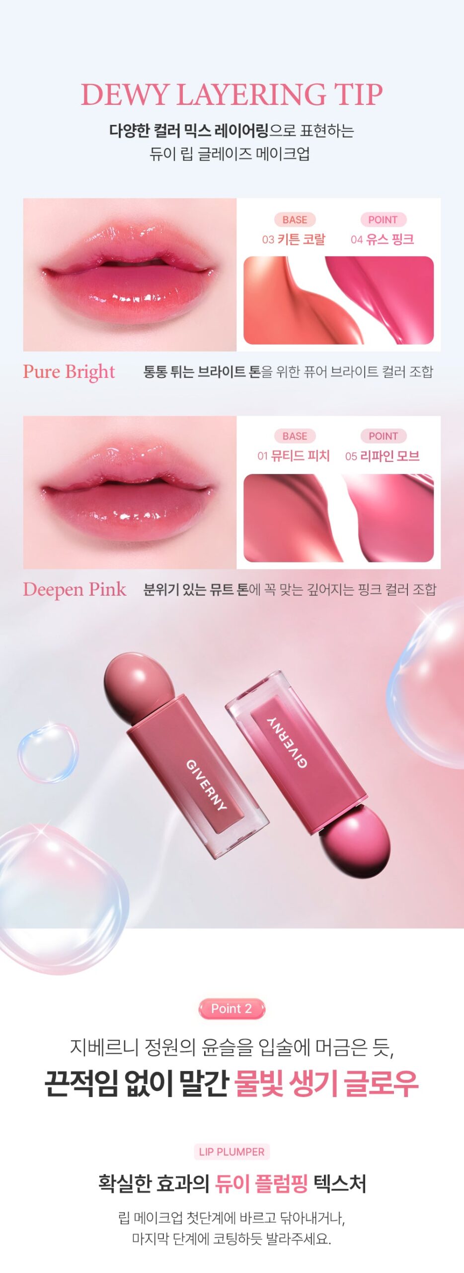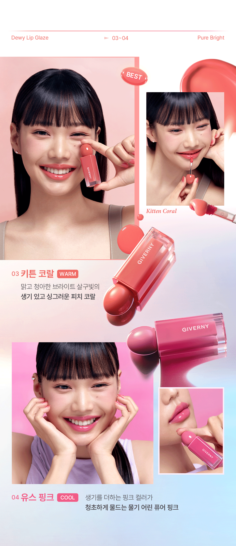 So I picked up the GIVERNY Dewey Lip Glaze recently, and honestly, I’m loving it! It’s got this super smooth texture that feels great on my lips without being sticky at all. I’ve been using the Pure Bright combo of shades 03 and 04 for a light everyday look—it gives me just the right pop of color while keeping things fresh. Plus, there’s something about how it seems to change with each season that’s pretty neat. Like in summer? Perfect for those sunny brunches! The non-sticky formula really plumps my pout too; makes ’em look fuller without any fuss! Definitely gonna be in my makeup bag from now on.