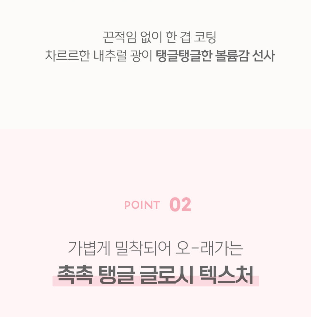 Achieve a natural yet vivid color with a single swipe. The high-shine gloss provides a full, bouncy volume while maintaining a clear and lightweight look.