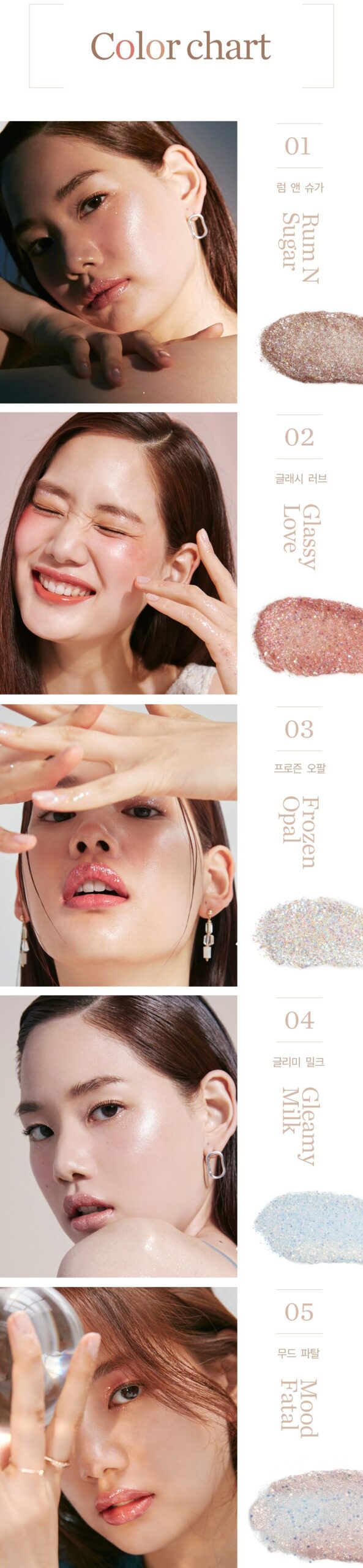 – Apply the clear and transparent texture with a radiant glow to the desired area of the face or body using a makeup tool or fingertips.