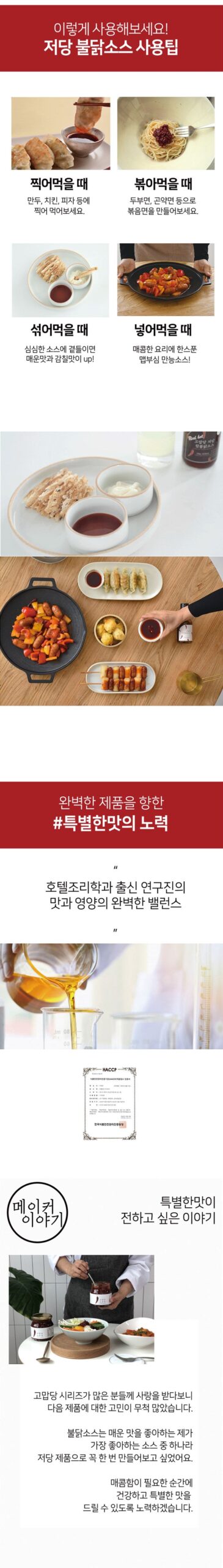Gomabdang Low-Sugar Buldak Sauce delivers the ideal “map-dan-jjan” (spicy, sweet, and savory) flavor combination, crafted for those who love bold flavors but want a healthier option.