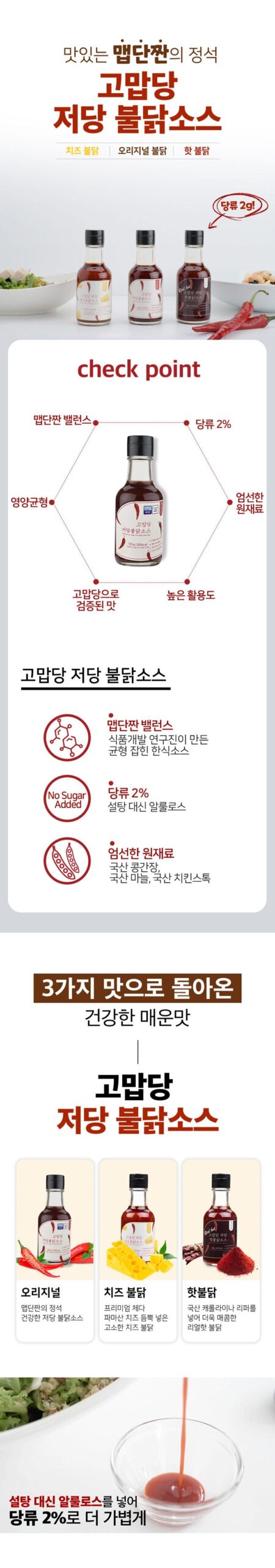 Gomabdang Low-Sugar Buldak Sauce delivers the ideal “map-dan-jjan” (spicy, sweet, and savory) flavor combination, crafted for those who love bold flavors but want a healthier option.
