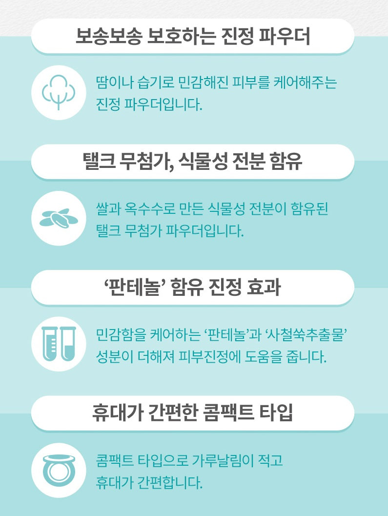 It is a soothing powder that cares for sensitive skin due to sweat or moisture.