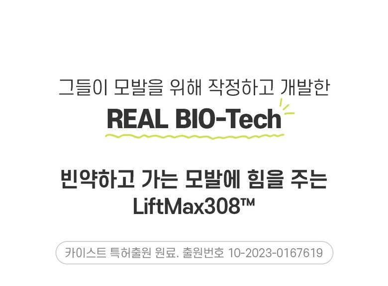 Developed using cutting-edge KAIST technology, this product is commercialized by Polyphenol Factory, a KAIST faculty startup. The patented LiftMax308™ technology delivers exceptional volume and strength to fine hair.