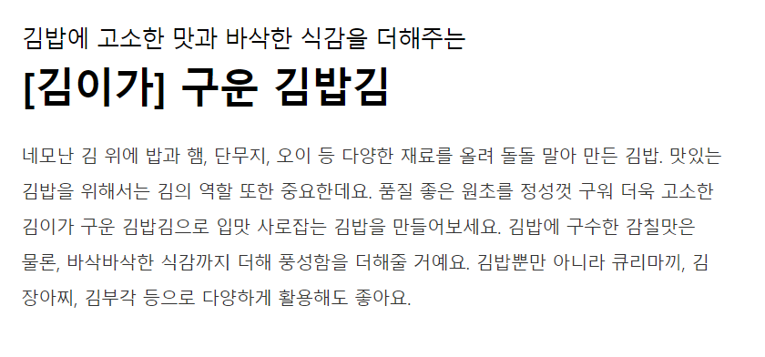 この海苔は驚くほど新鮮で、まさにおばあちゃんの味。キンパにした時、その風味が心まで温めてくれます。また購入します!