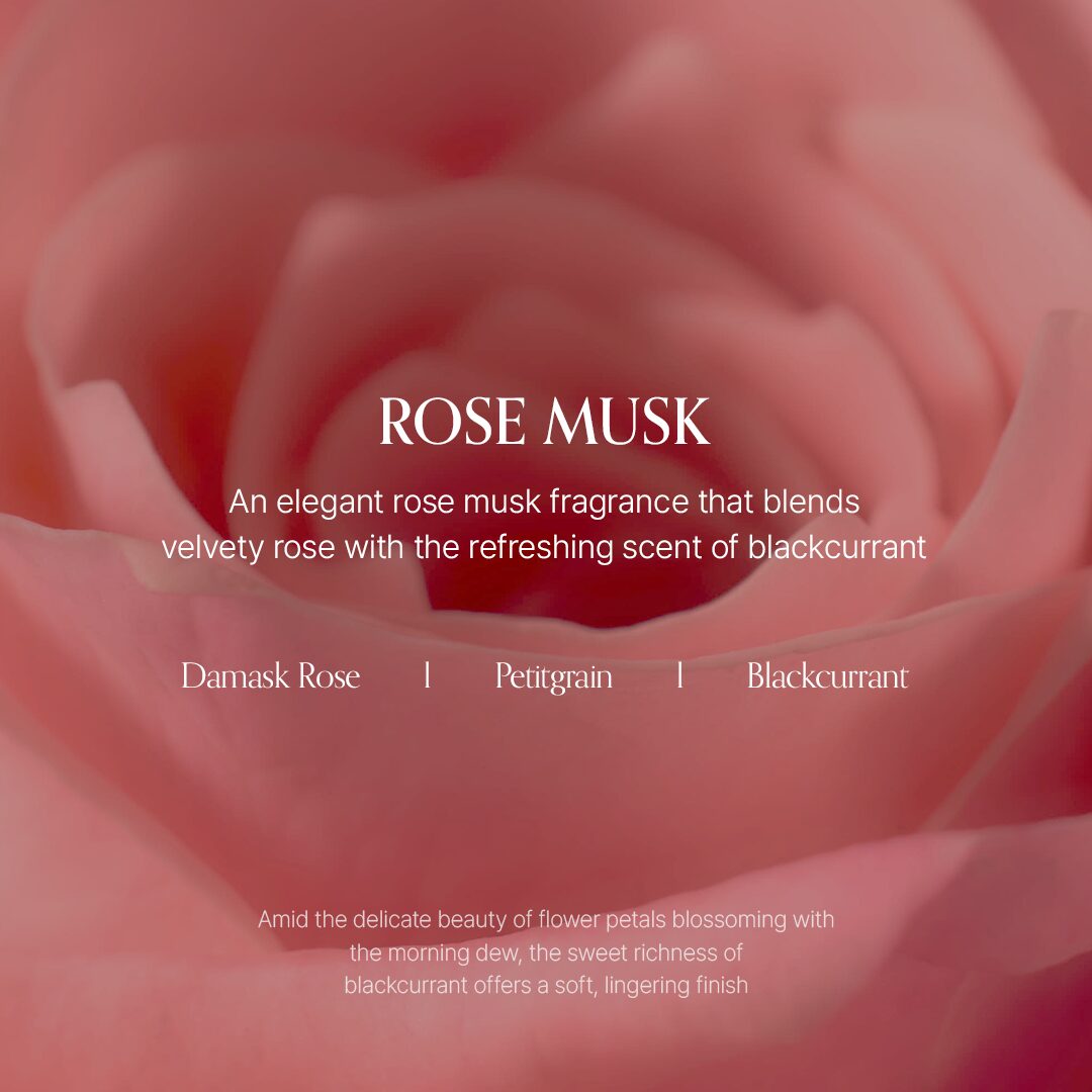 Enjoy the refreshing yet luxurious rose musk fragrance, complemented by crisp notes of blackcurrant leaf and the delicate aroma of Bulgarian rose.