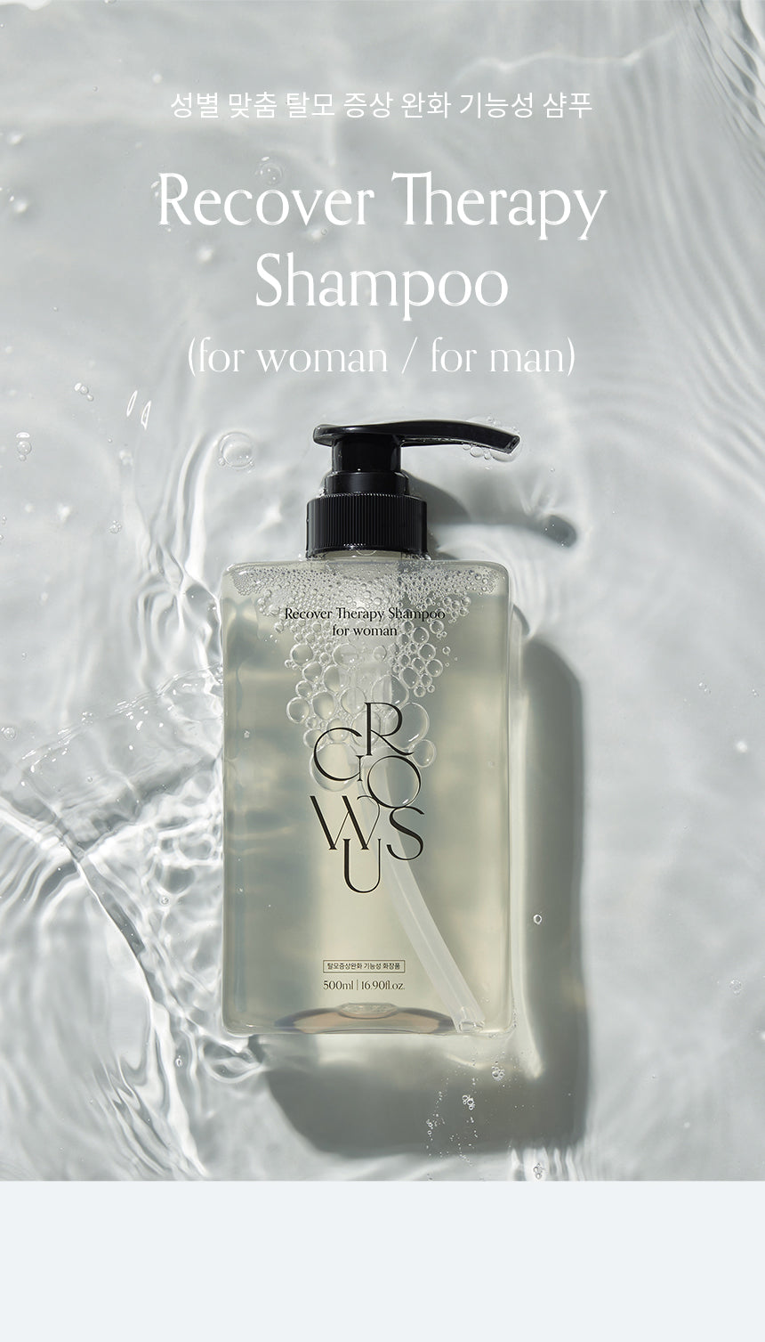 Experience a healthier scalp and stronger hair with the nourishing care of GROWUS Recover Therapy Shampoo for Women. Perfect for women seeking a gentle yet effective hair loss solution.