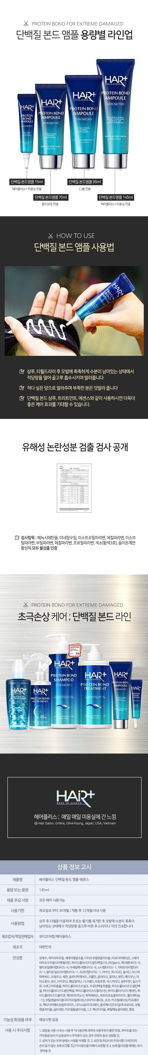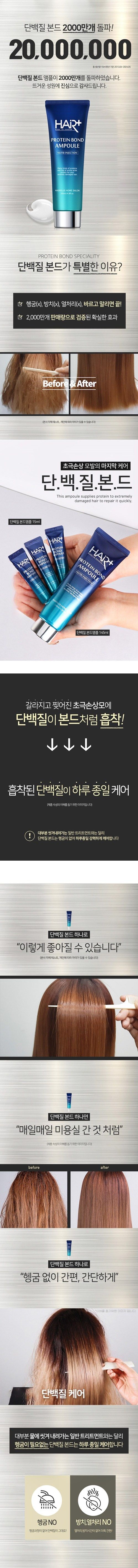 - Apply a suitable amount of Hair Plus Protein Bond Ampoule Hair Essence to clean, towel-dried hair or dry hair.