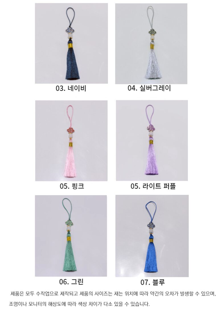 Just got my hands on this set of Norigae and wow, they’re not just pretty; the texture is delightful! The polyester feels silky smooth against your skin while the glass beads give that perfect little weight to each piece. It’s like wearing a gentle caress around your waist—every move you make feels adorned in culture. I’ve styled these with my favorite jeogori, and it honestly enhances every twist and turn because they’re so vibrant yet soft at touch. You can tell they’ve been made with care—it’s comforting knowing that traditional craftsmanship still shines through something as small as these mini tassels.
