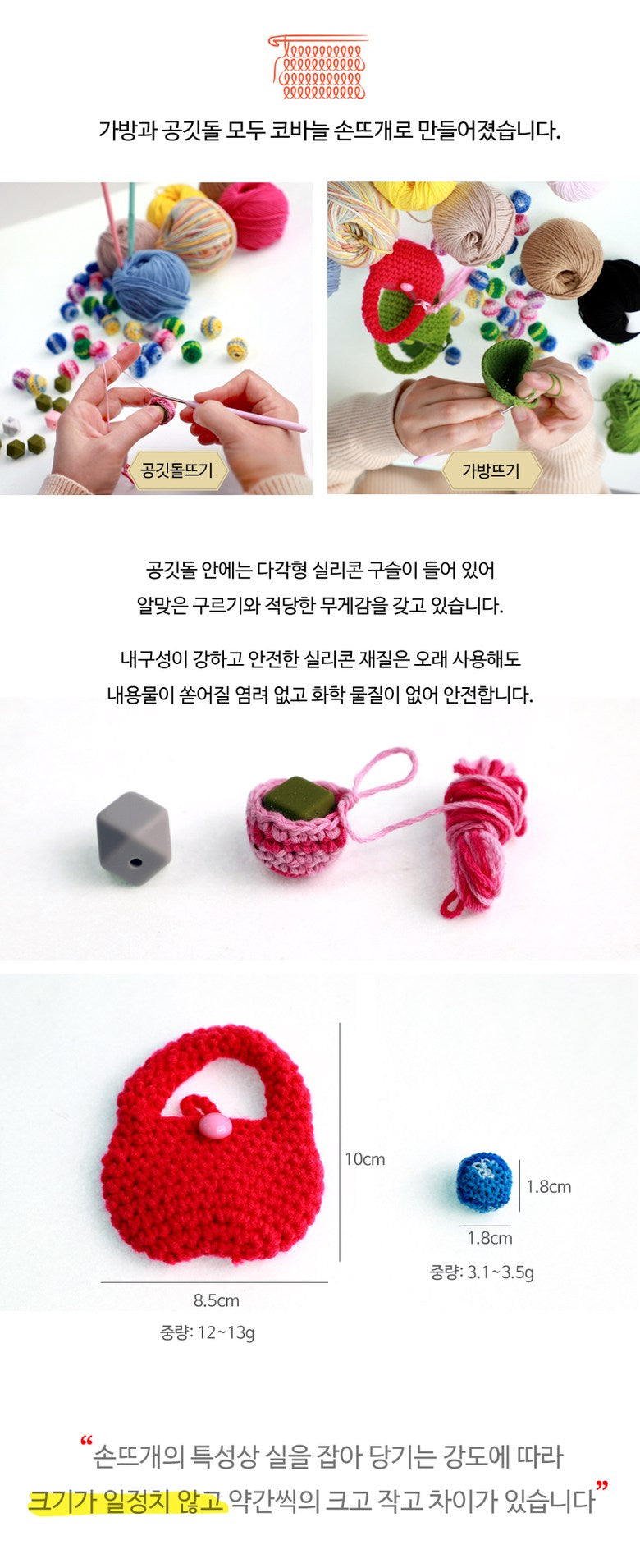 - Both the mini bag and Gonggi stones are meticulously hand-crocheted.