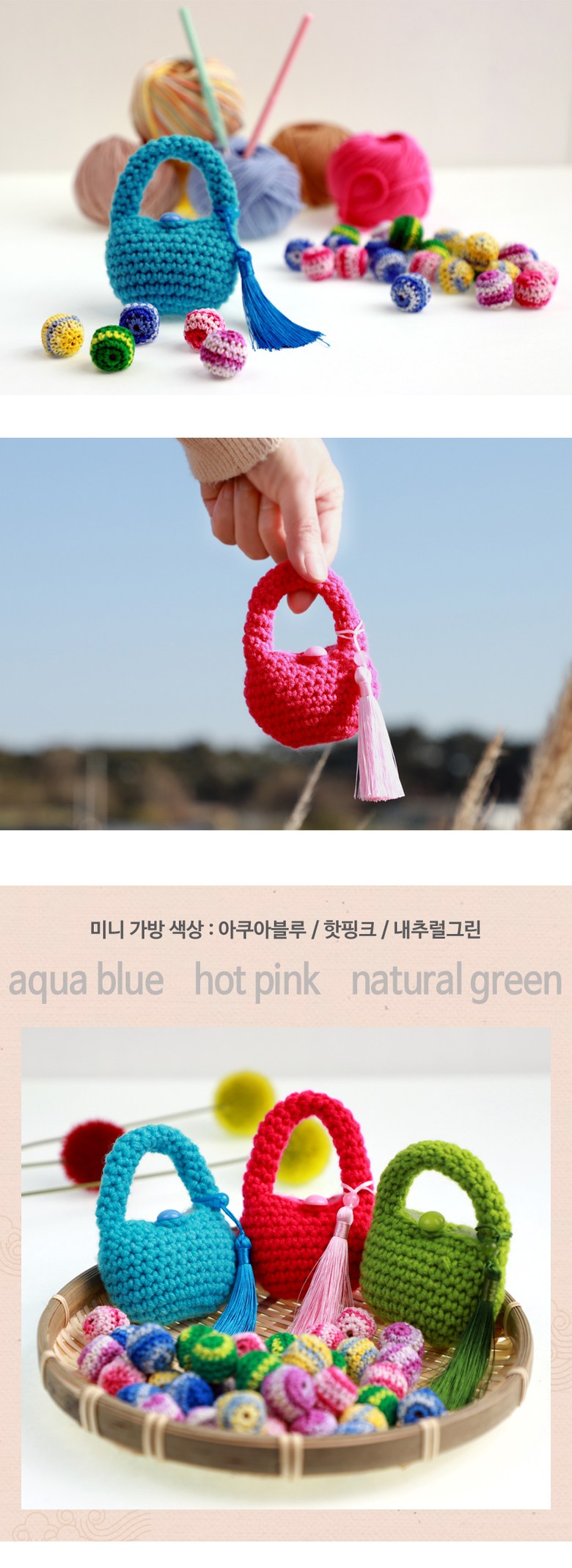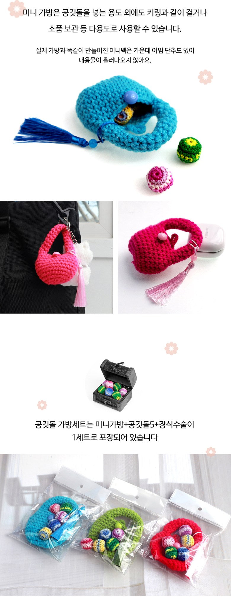 - Both the mini bag and Gonggi stones are meticulously hand-crocheted.