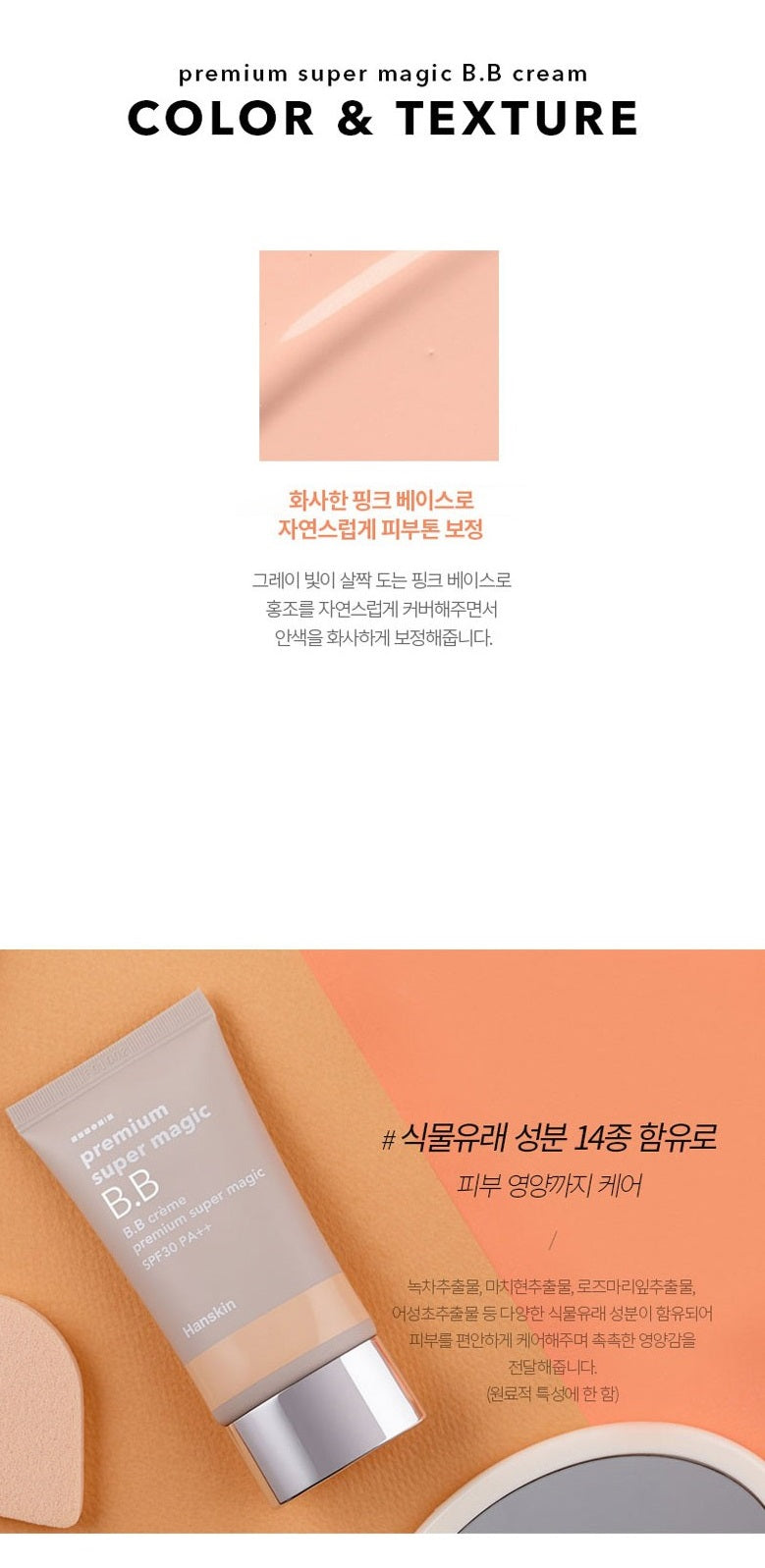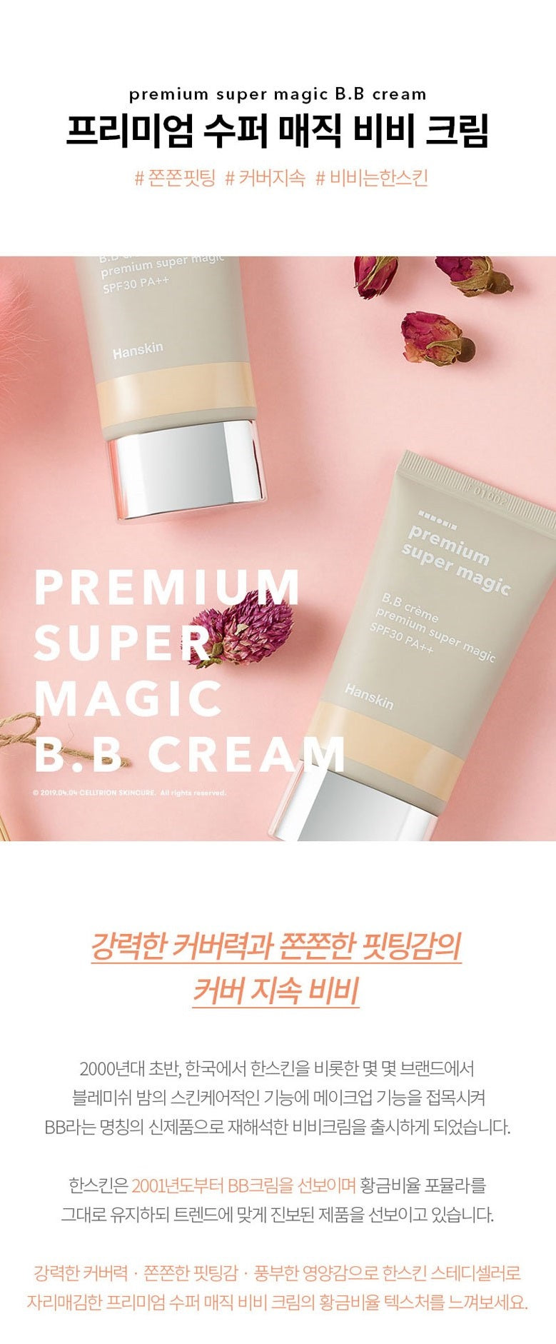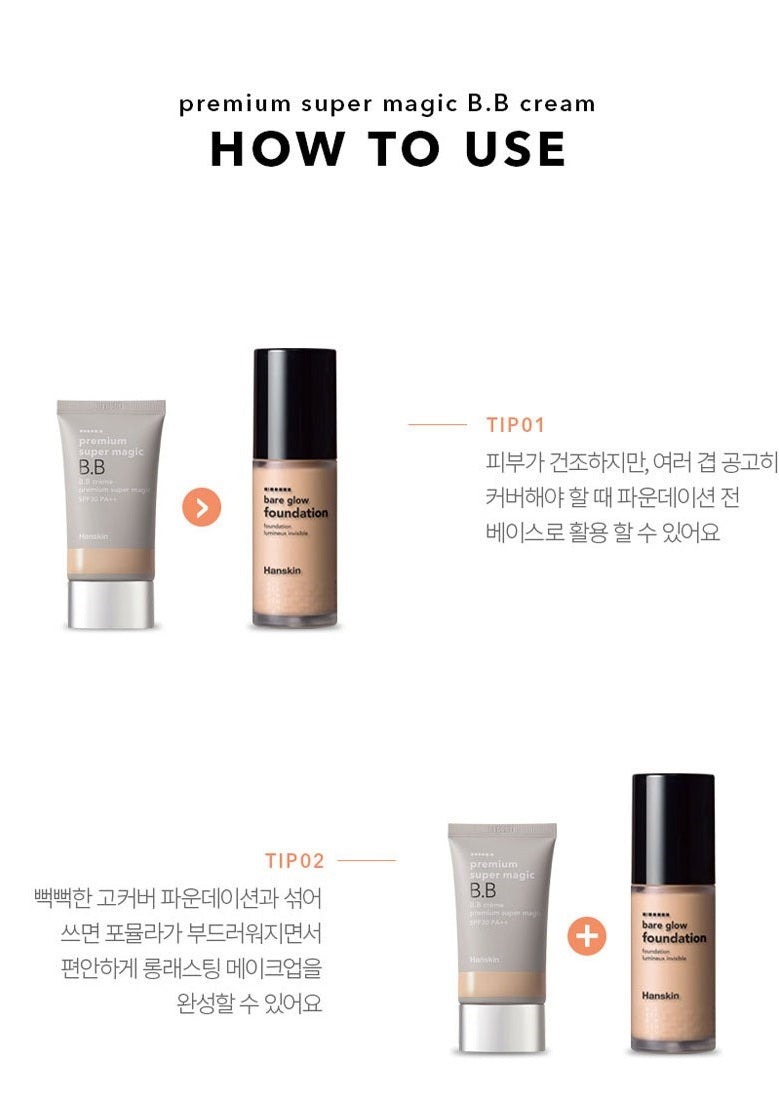 Strong coverage. Tight fitting • Feel the golden ratio texture of Premium Super Magic BB Cream, which has established itself as Hanskin’s steady seller for its rich nutrition.