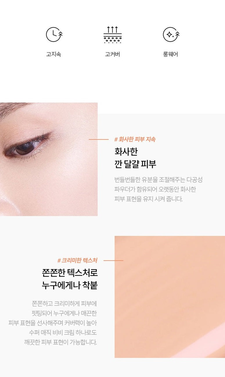 It is firm and creamy and fits the skin to give anyone a smooth skin expression, and with high coverage, it is possible to express clean skin with just one Super Magic BB Cream.
