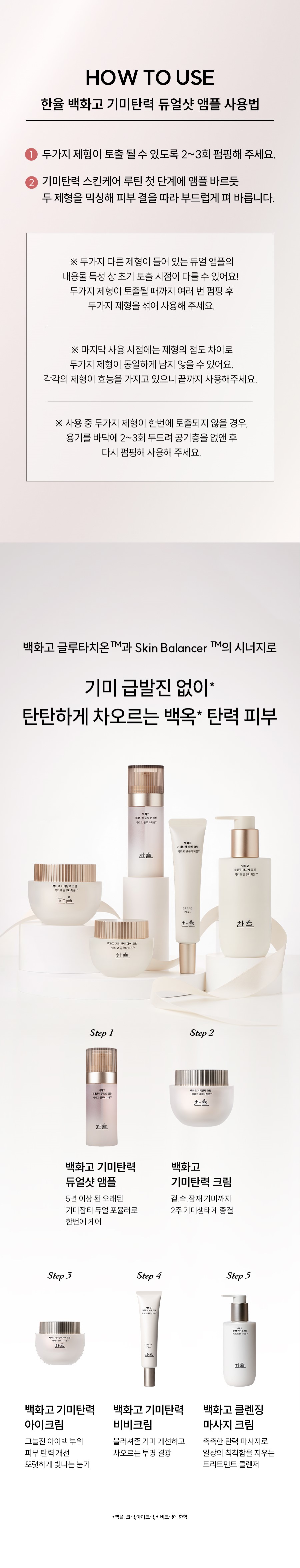 - Baekhwago Elasticity Emulsion Ampoule: For improved firmness and resilience.