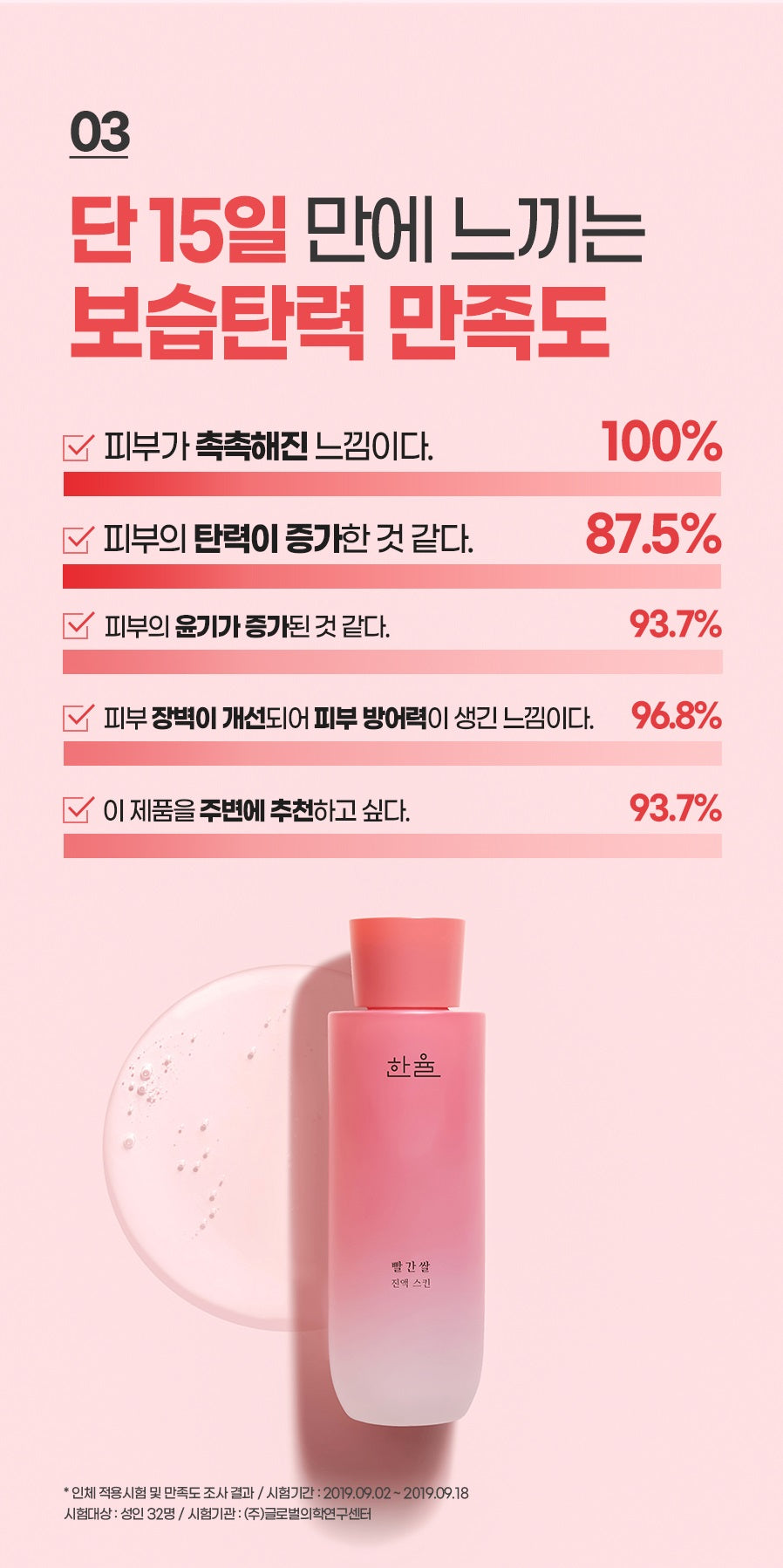Experience 24-hour non-drying moisture with Hanyul’s special moisturizing ingredient Red Rice Essence TM.