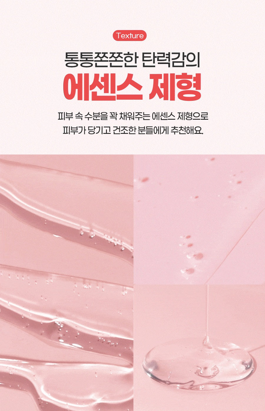It is an essence formula that fills the skin with moisture, so it is recommended for those with tight and dry skin.