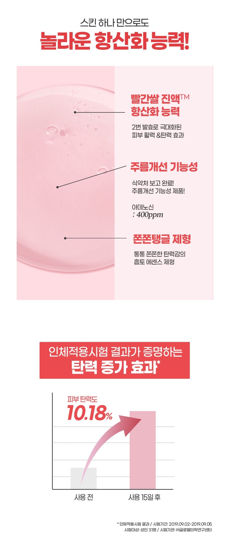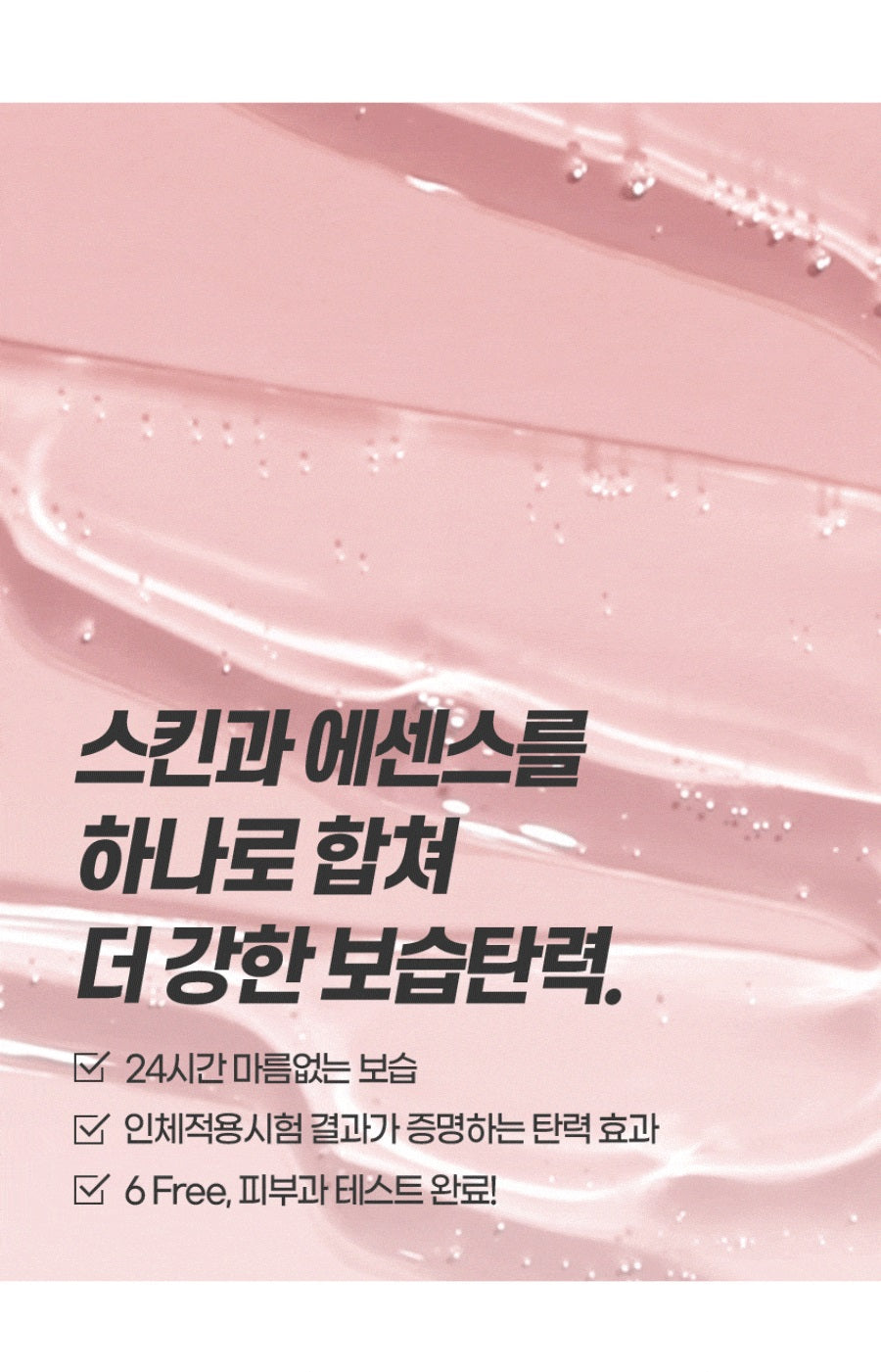 Stronger moisturizing elasticity by combining toner and essence into one.