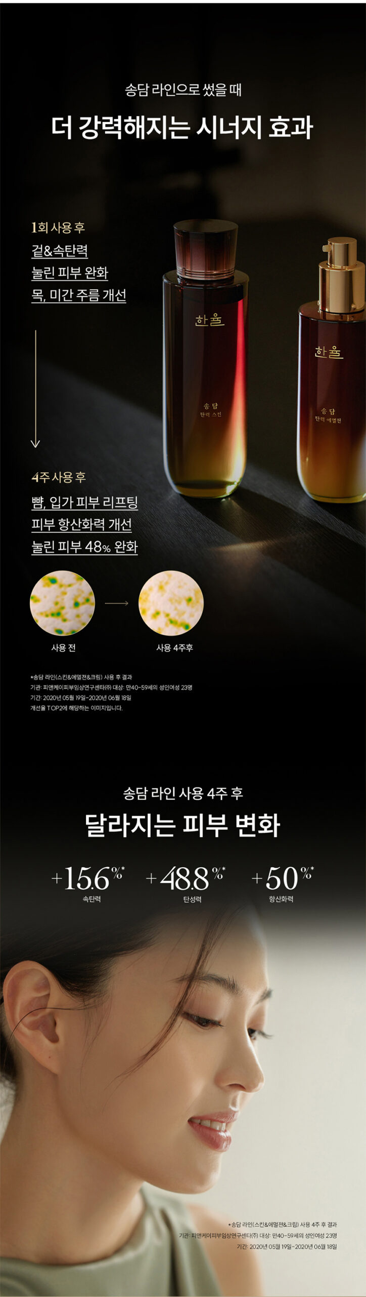 For even more powerful results, use the Songdam Firming Skin with the Songdam Firming Emulsion. This combination delivers comprehensive elasticity improvement, including the reduction of surface wrinkles and deep hydration.