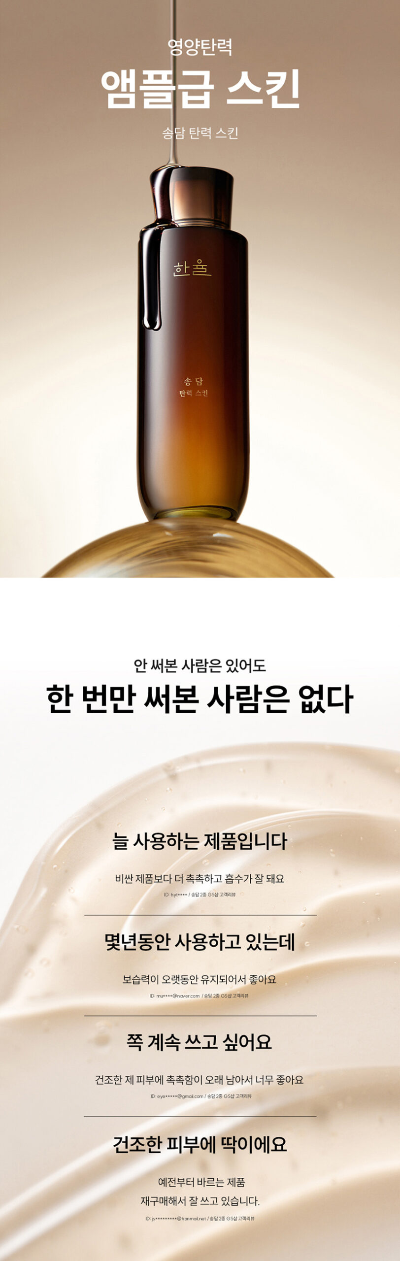Many loyal customers have praised the Songdam Firming Skin for its long-lasting hydration, rapid absorption, and soothing texture. Users consistently note significant improvements in skin moisture and elasticity.