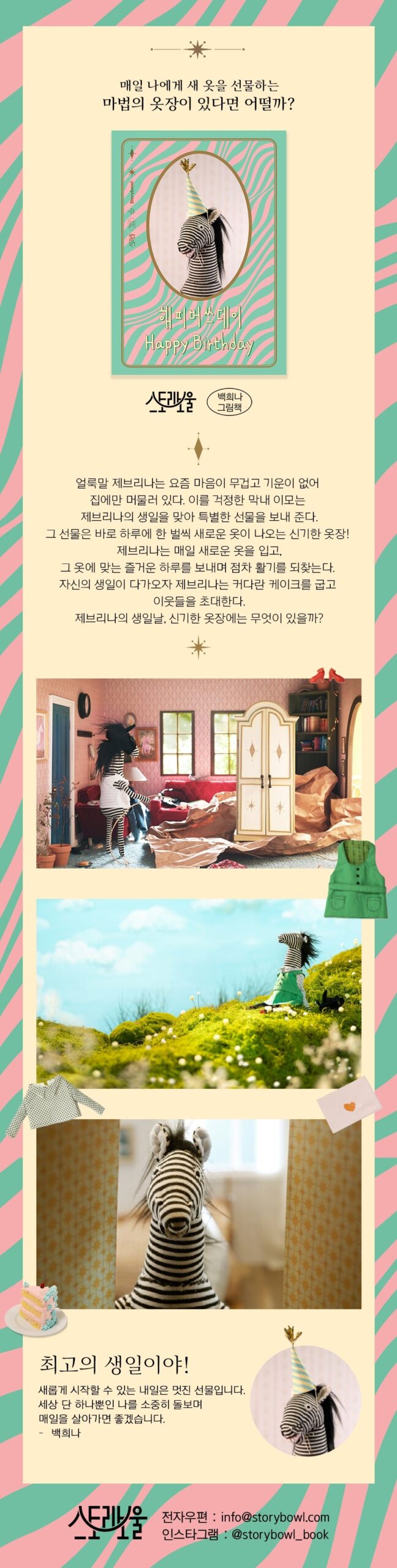 Heyyy! Just read ‘Happy Birthday’ by Baek Hee-na and wow, it’s seriously something special! I love how this zebra girl named Zebrina finds joy through a wardrobe that sprinkles little magical outfits into her life every day. 🌈✨ It’s all about self-care and letting the colors of life pop, ya know? Plus, it makes you wanna treat yourself like you’re on your own adventure! Definitely check it out if you need a cozy pick-me-up—it’ll leave your heart feeling light!