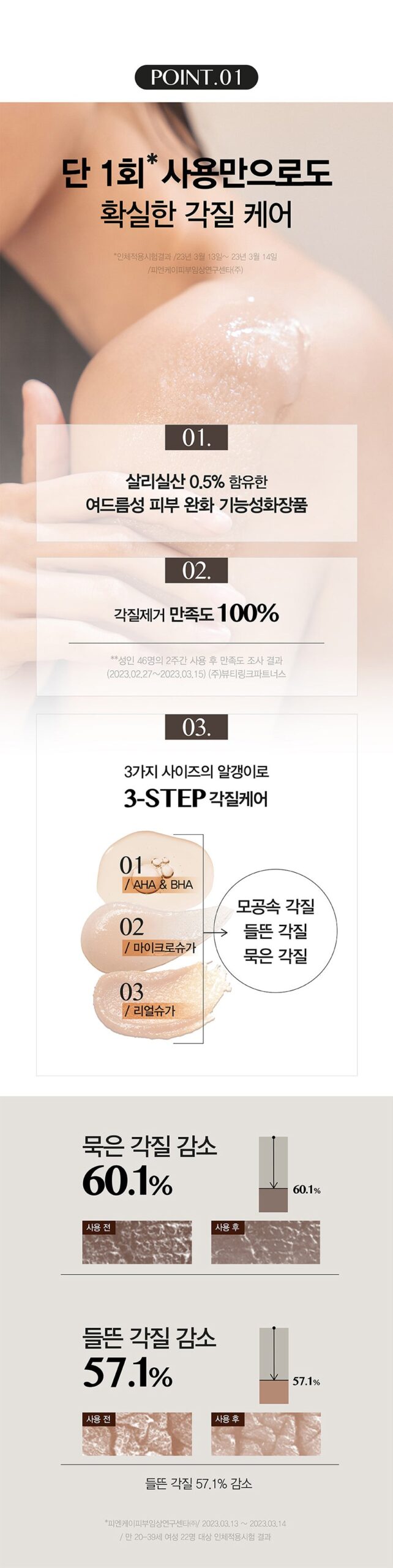 - 3-STEP Dead Skin Care: Designed to tackle accumulated dead skin cells in pores, old dead skin, and exfoliation care.