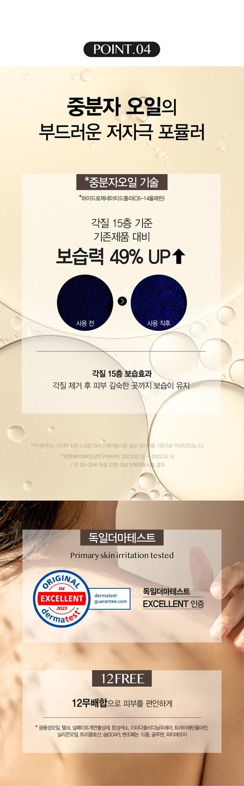 - Medium Molecule Oil Technology: This hypoallergenic formula increases moisturizing power by 49%.