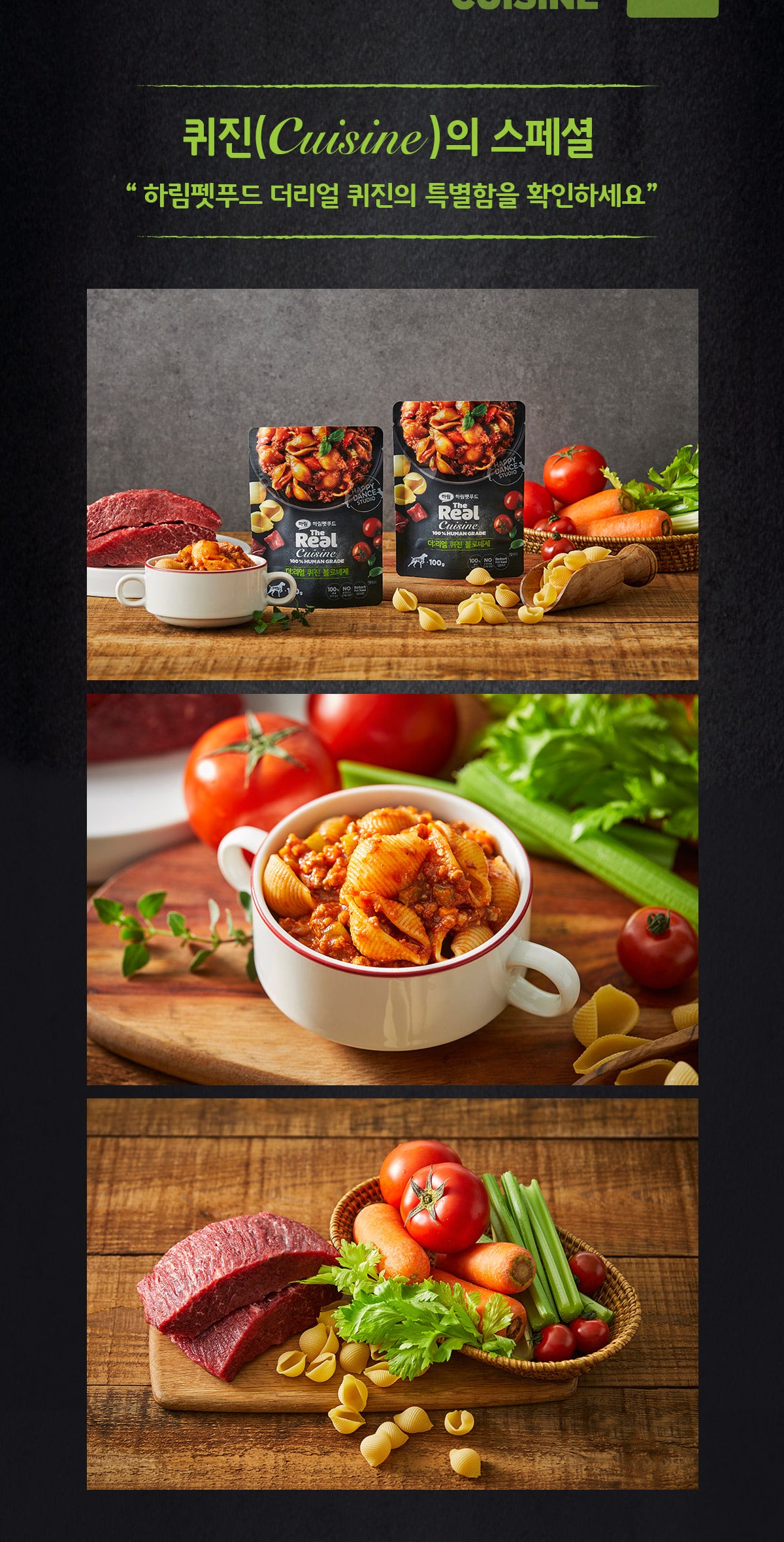 So, we created dishes with real ingredients in mind for dogs’ health. We provide the dishes we eat and the dishes our dogs want to eat in ‘The Real Style’.