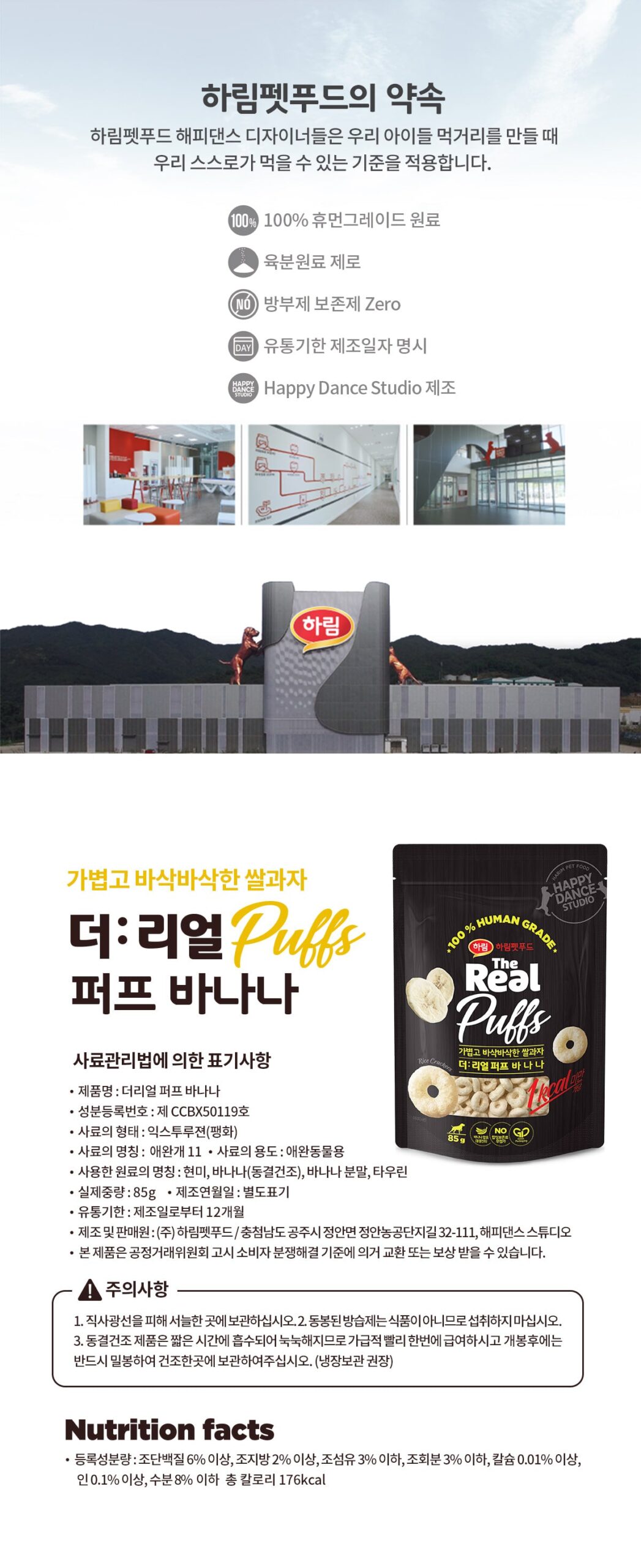 Offer your pets the true joy of health and stress relief with these delightful snacks. HARIM The Real Puffs are made from 100% human-grade ingredients, ensuring that they are safe for both you and your pets to enjoy.