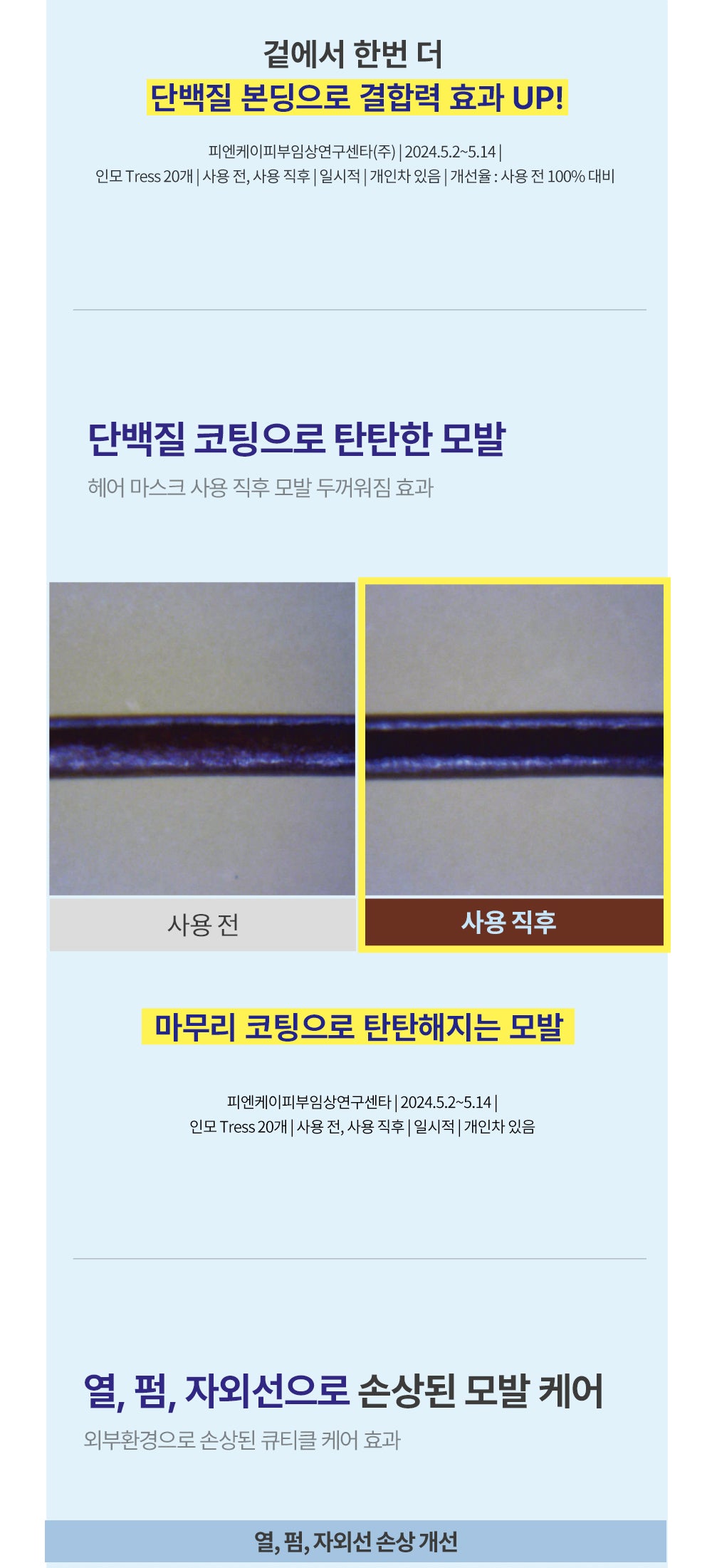 Formulated with double the amount of protein compared to previous versions, this hair mask targets the hair core to improve protein density. It enhances detangling, silkiness, smoothness, and elasticity, delivering a salon-quality hair repair experience.