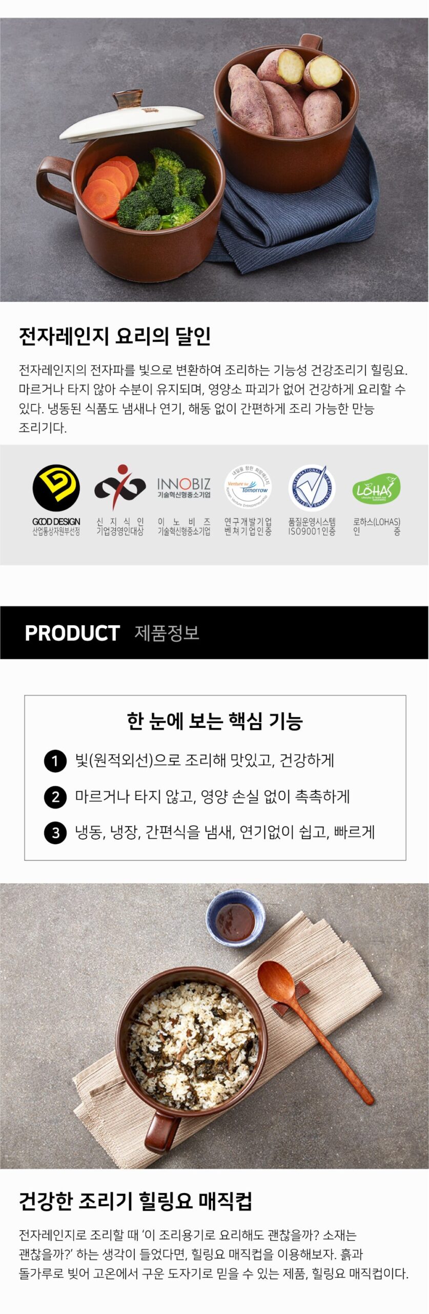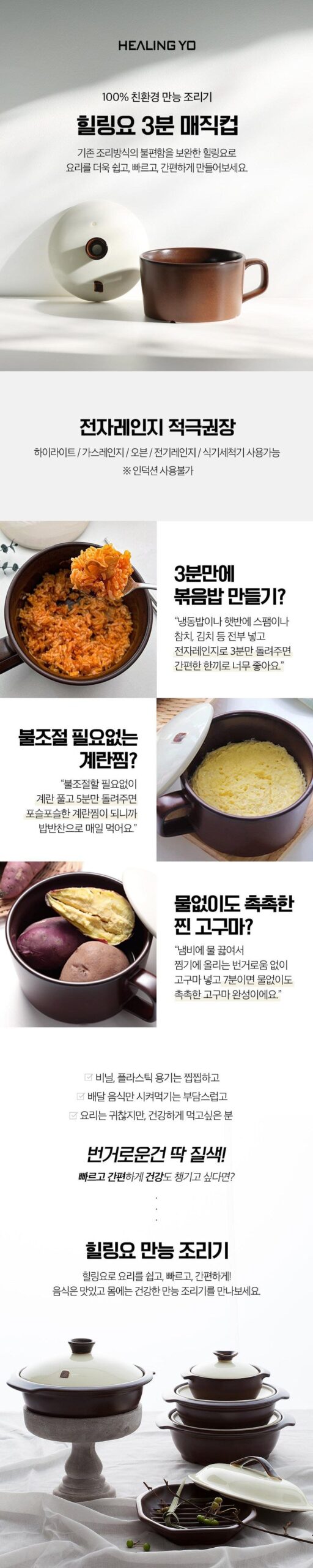 HEALINGYO is a multifunctional cooking appliance that prepares food effortlessly without the hassle of smell, smoke, or defrosting. Made from high-quality pottery, consisting of soil and stone powder, and baked at high temperatures, the Magic Cup is your trustworthy cooking companion.