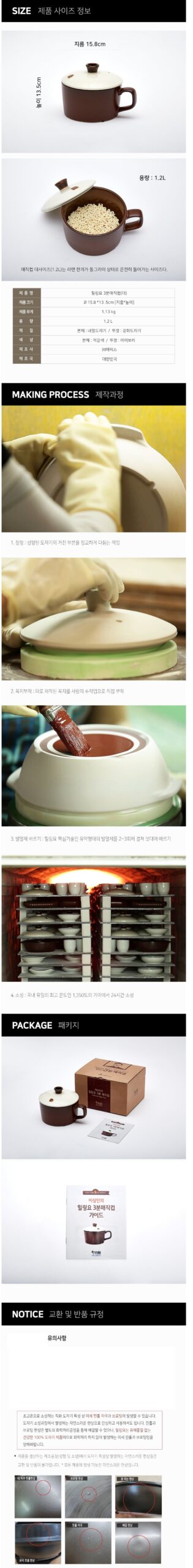 - Quality Assurance: Fired for 24 hours in a kiln at 1350ºC, the highest temperature in Korea. Fine pinhole marks and blotting may occur due to the absence of chemical treatments, but rest assured, these are natural features of our 100% ceramic products and are completely safe.