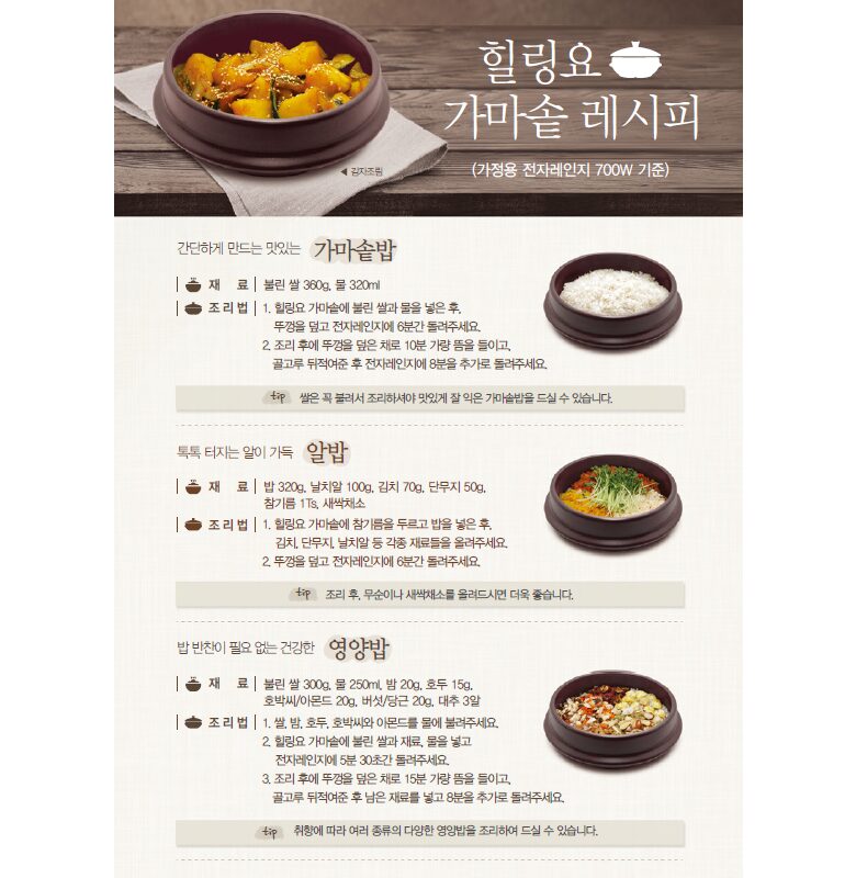 - Soak rice in the HEALINGYO cauldron for 30 minutes, add fresh water, cover, and microwave for 6 minutes.