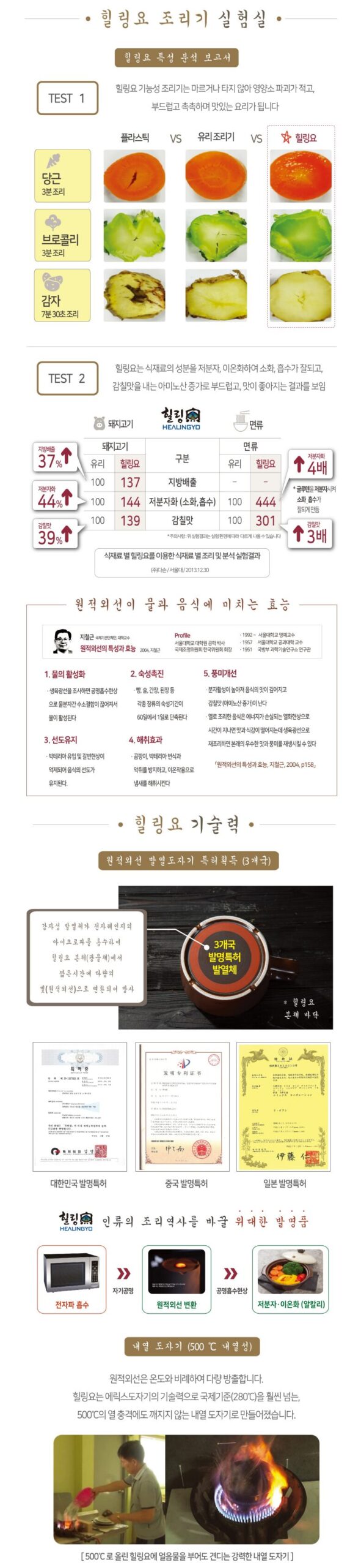 HEALINGYO features patented far-infrared heating ceramics, recognized in Korea, Japan, and China. Made of heat-resistant ceramics that withstand temperatures up to 500ºC, exceeding the international standard of 280ºC.
